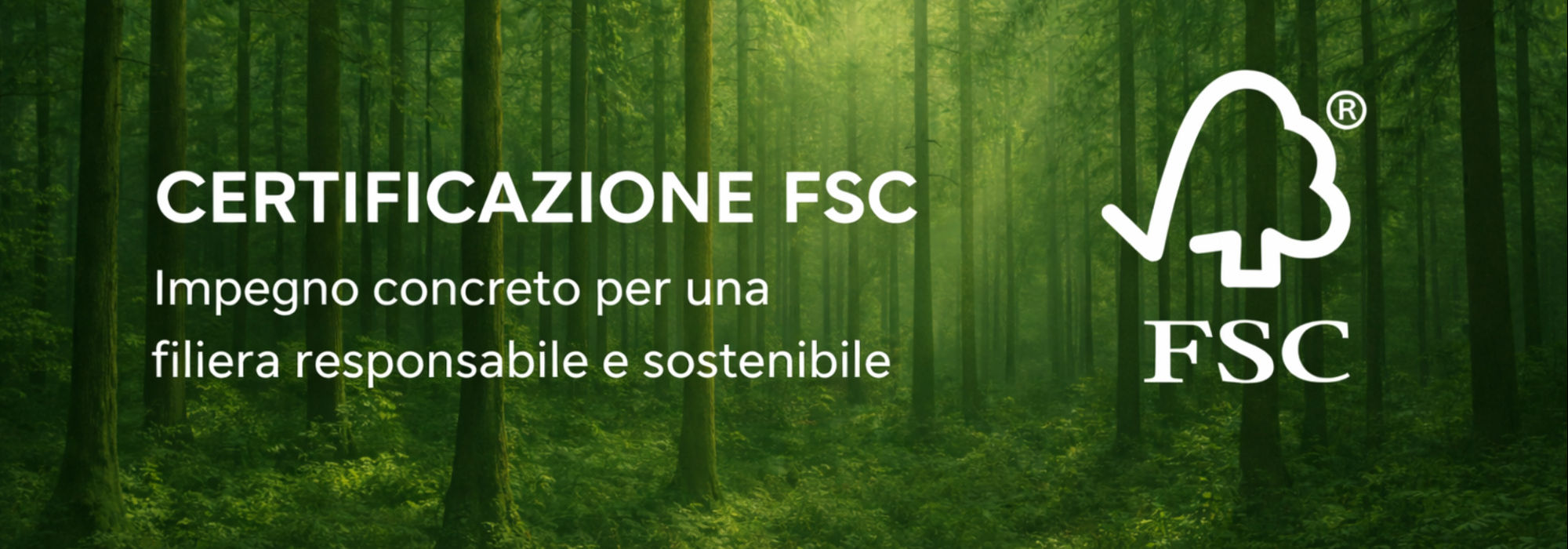 La certificazione FSC® (Forest Stewardship Council®) garantisce che i materiali di origine cartacea utilizzati dall’azienda provengano da foreste gestite in modo responsabile, nel rispetto dell’ambiente, dei diritti delle persone e della sostenibilità economica.